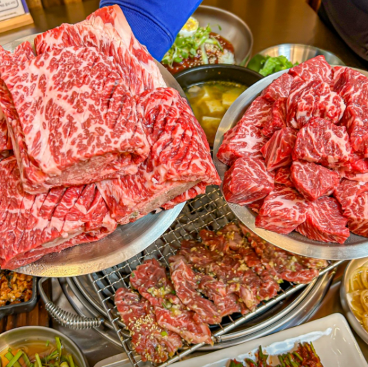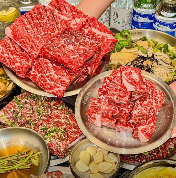 식사 메뉴로는 소고기 된장찌개, 가락국수, 비빔국수 등이 준비되어 있어 메인 고기 메뉴와 함께 즐기기 좋습니다. 부담 없는 가격으로 푸짐한 식사를 할 수 있어 만족도가 높습니다.