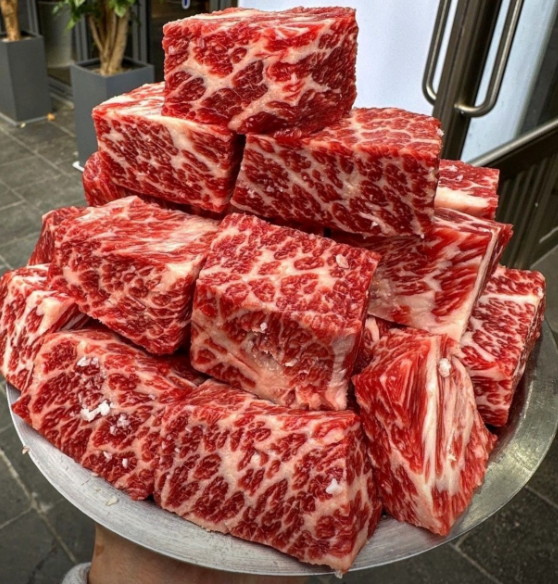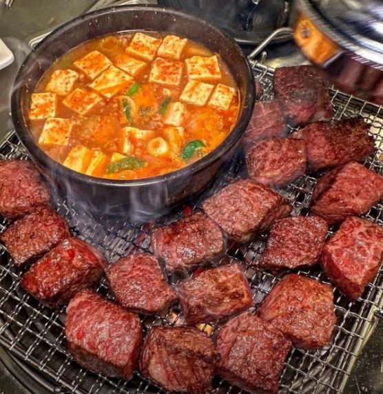 우대포 마곡점의 깍뚝꽃살은 150g에 27,000원으로, 두툼한 고기를 한입 크기로 잘라 먹는 재미가 있습니다. 부드럽고 고소한 풍미가 일품으로, 방문객들이 가장 많이 찾는 메뉴입니다.